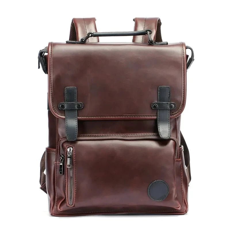 Denne rygsæk passer perfekt til dig, der ønsker en sofistikeret og professionel taske med karakter. Det mørkebrune læderlook og de sorte spænder skaber en elegant kontrast, mens funktionaliteten gør den velegnet til hverdagsbrug.