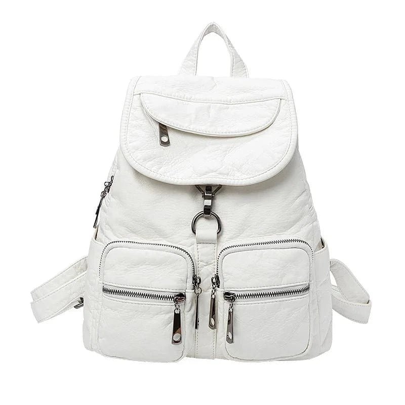 Denne polstrede rygsæk er skabt til dig, der ønsker et feminint og funktionelt alternativ til den klassiske håndtaske. Det hvide, læderlignende materiale giver et sofistikeret look, mens de mange rum gør det nemt at organisere dine ejendele – fra makeup og mobil til bøger og accessories.