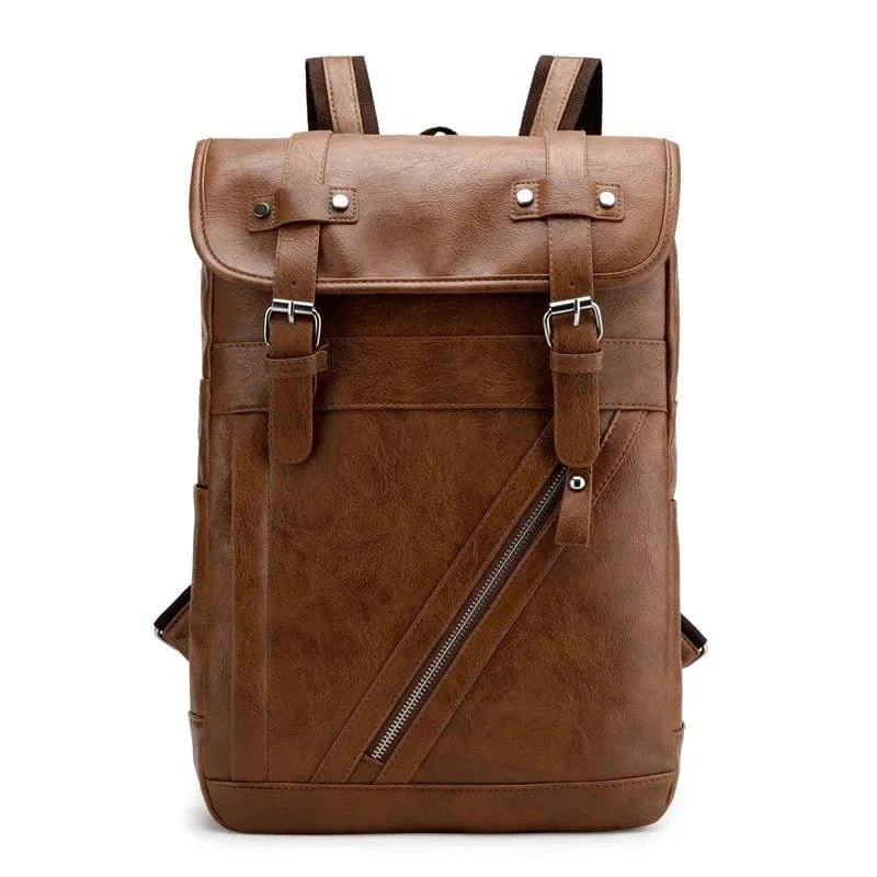 Denne læderrygsæk er det perfekte valg til dig, der ønsker en kombination af funktionalitet og klassisk stil. Den er designet til at rumme en 15,6-tommer bærbar computer sikkert og komfortabelt takket være det polstrede rum. Fremstillet i slidstærkt syntetisk læder med flotte detaljer, udstråler den en professionel og elegant look, der passer både til arbejdet og studier. Den diagonale lynlås og spænderne foran giver rygsækken et unikt udtryk, mens de justerbare skulderstropper sikrer god bærekomfort hele dagen.