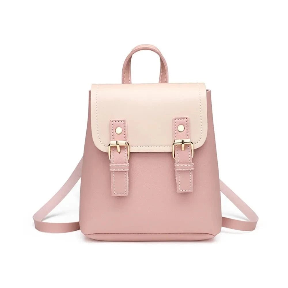 Denne smart lille rygsæk kombinerer minimalisme og funktionalitet med et strejf af vintage-stil. Den er udført i glat imiteret læder med kontrastfarvet klap og dekorative spænder i guldlook. Trods sin kompakte størrelse rummer den nemt dine vigtigste ejendele som mobil, pung og makeup. Perfekt til hverdagsbrug, cafébesøg eller en tur i byen. Den justerbare rem gør den behagelig at bære både som rygsæk og skuldertaske. Et alsidigt valg til kvinder, der ønsker et praktisk og elegant accessorie.
