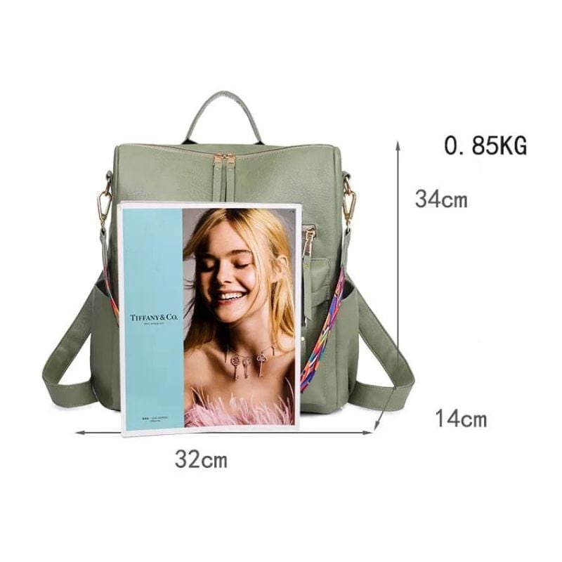 Farve: lyserod, gra, cremefarvet, navy bla, leopardbrun, vinrod, khaki, bla Varetype: Rygsæk Lukketype: Lynlås Materiale: PU-læder Vægt: 0,85 kg Dimensioner: 34 x 32 x 14 cm
