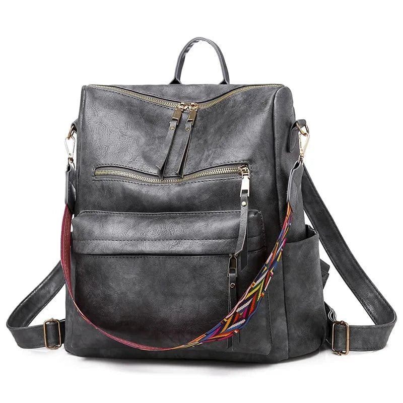 Denne store rygsæk i læderlook er både praktisk og stilfuld, perfekt til dig der har brug for god plads i hverdagen. Tasken har et elegant og moderne udtryk i brunt kunstlæder med en farverig, etnisk-inspireret rem som iøjnefaldende detalje. Den rummer nemt laptop, bøger, tøj og andre nødvendigheder og er ideel til både arbejde, studie og rejser. Med flere lynlåslommer, sidelommer og justerbare stropper får du en taske, der kombinerer funktionalitet og personlig stil.