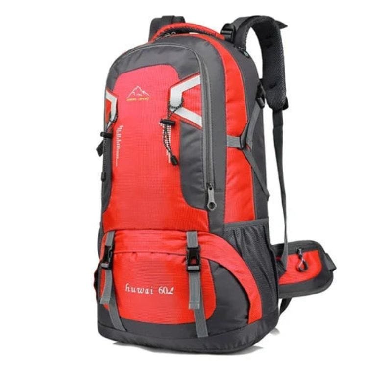 Farve: Rod, sort, lilla, marinebla Varetype: Stor unisex rygsæk til rejser eller udendørsbrug Lukketype: Lynlås Materiale: Nylon (ydre), polyester (foring) Kapacitet: 76 liter Dimensioner: 62 x 35 x 24 cm Vandtæthed: Vandtæt