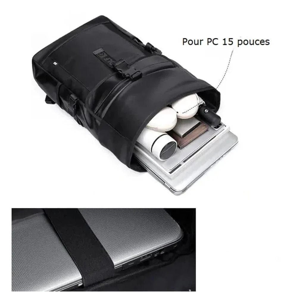 Den vattentäta ytan och den säkra roll-top-stängningen gör att din utrustning hålls torr i alla väder. Perfekt för pendling, cykling eller resor.